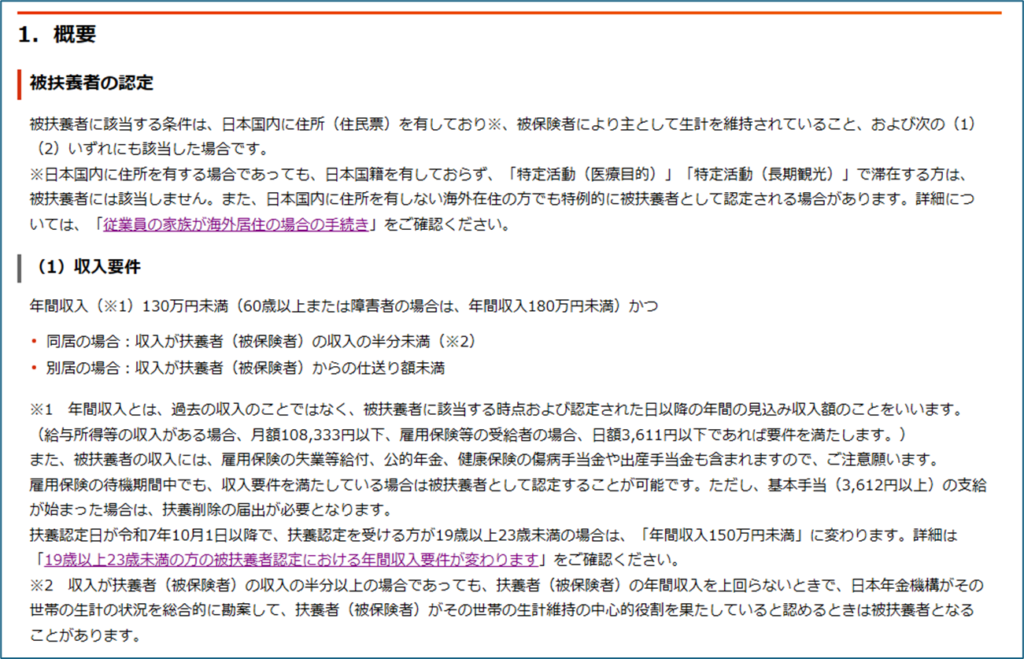 - 年間収入は過去の収入ではなく、被扶養者に入れる時点以降の年間の見込み収入額のことをいう